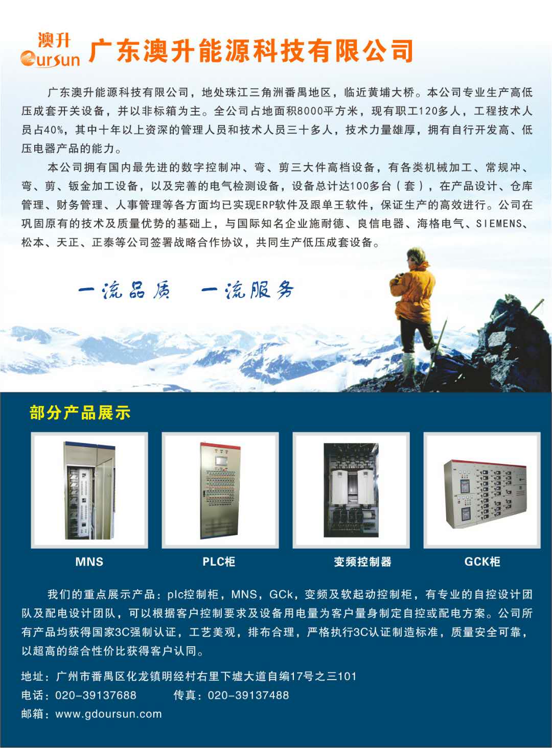 公司是一家以生产配电箱/设备控制箱/电表箱 /电源箱/配电柜/金属机箱等壳体以及高低压成套开关设备为主的有限责任公司。公司技术力量雄厚,生产设备先进,以及一批十年以上资深的管理人员和技术人员,能够满足各类生产的需要。公司在巩固原有的技术及质量优势的基础上,与国际知名企业siemens(松本、tcl、法国罗格朗)等公司签署技术合作协议,共同生产sivacon ---8pt 系列低压开关柜。 同时公司是国际巨头施耐德、海格电气授权的配电箱生产厂以及上海良信的战略凯发娱乐k8的合作伙伴。经过多年的发展壮大,产品遍布广东各个地,箱体外壳等钣金产品远销全球。公司亦发展成广东省高低压成套开关设备制造业的骨干企业之一。